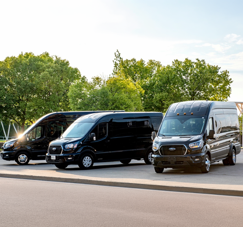 We operate a professional fleet of black Minibuses, Ford Transit Vans, and Minivans. Clean, upscale shuttles ready for any occasion.